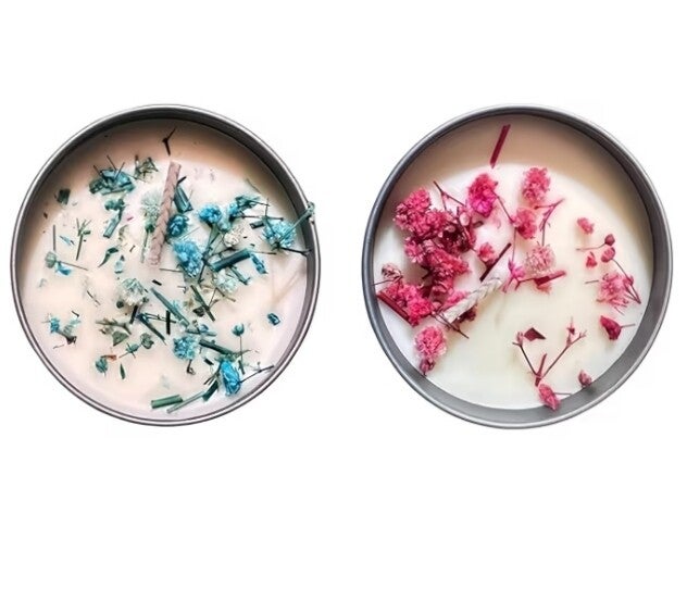 Cera di soia, con fiorellini essiccati, con barattolo in metallo casuale